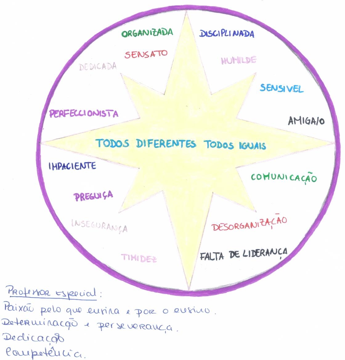 O nosso Brasão de grupo é representado por um circulo e uma estrela de oito pontas, em que na parte superior escrevemos caracteristicas que o professor deve possuir e na parte inferior, caracteristicas que o professor não deve ter.