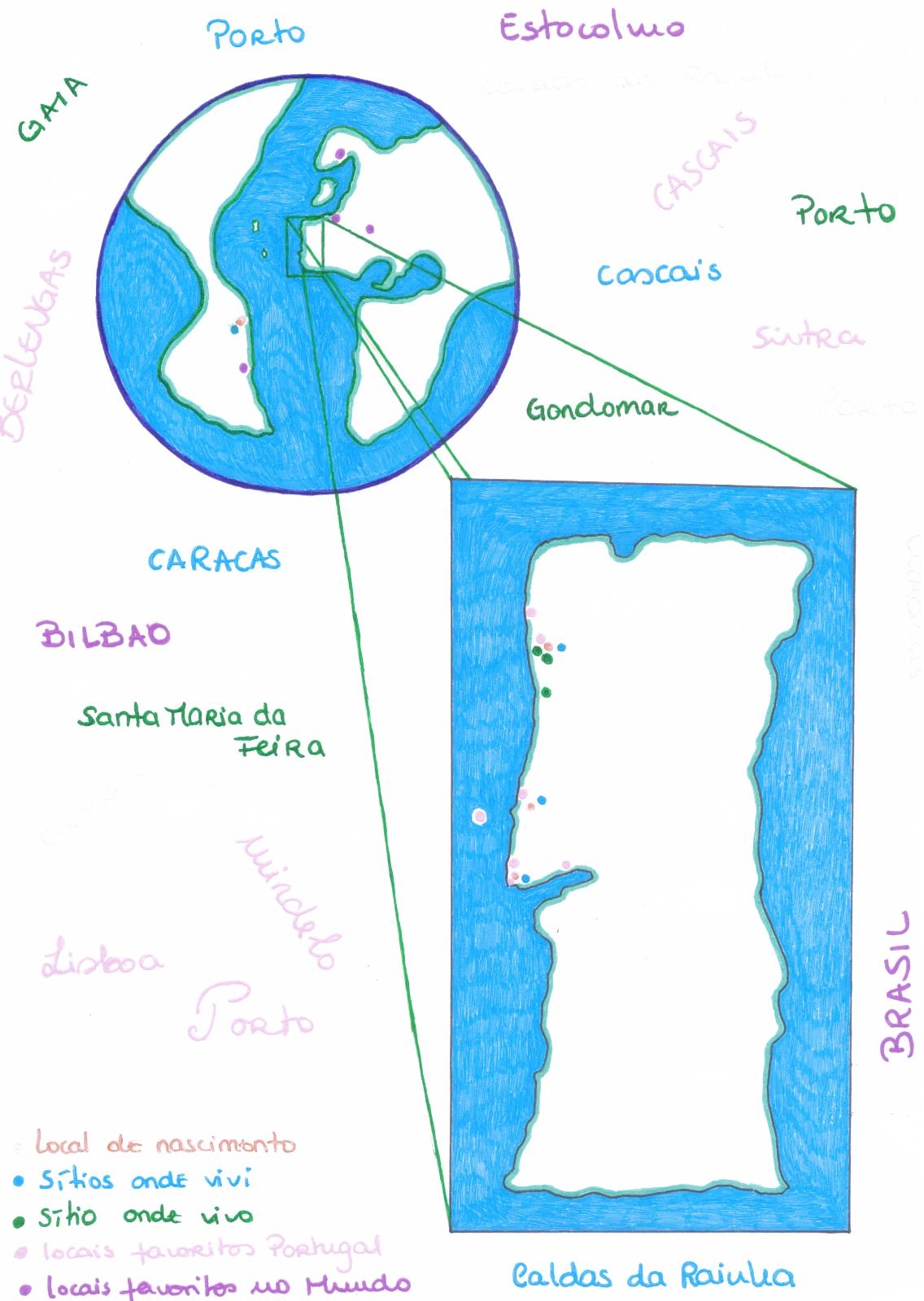 No nosso Mapa de Grupo colocamos os locais onde nascemos, os sitios onde vivemos, os locais favoritos dentro e fora de Portugal. Conseguimos perceber que somos todos muito diferentes, com diferentes percursos de vida e com gostos muito dispares.